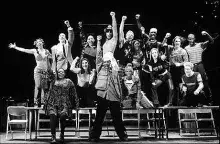 The company joins in a reprise of the affirmation that love is all and that there is "no day but today" ("Finale").
