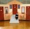 A large, sturdy stage set, with wheels for easy maneuvering.